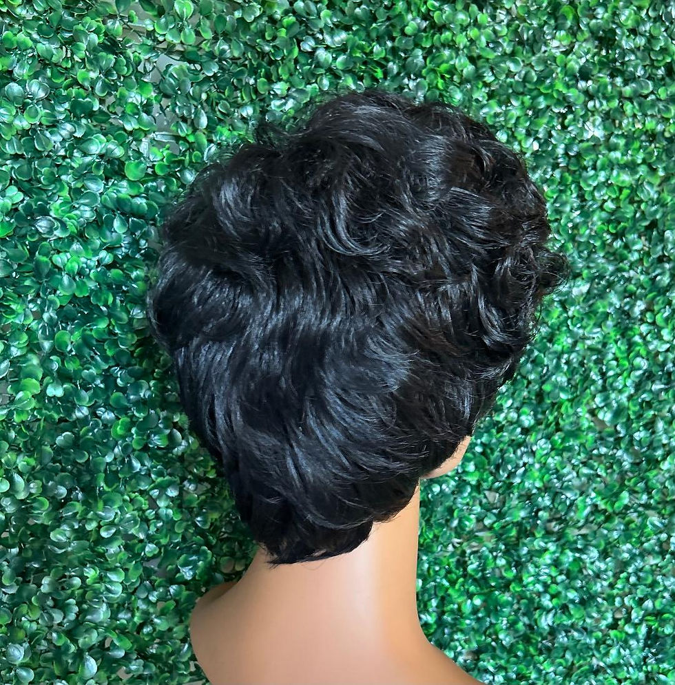 12–14” Luxury Human Blend Wig Size: S/M Jet black 150% Density Non-lace #LWBZ